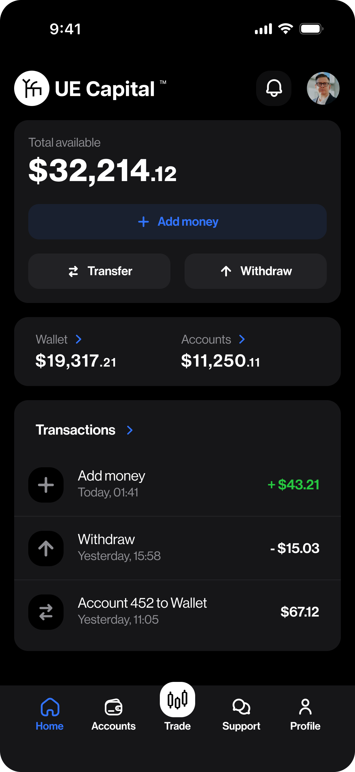 Balances, positions, deposits, withdrawals, IB earnings — all on the same execution stack as our MT5 desktop. Designed for traders who live on a phone.